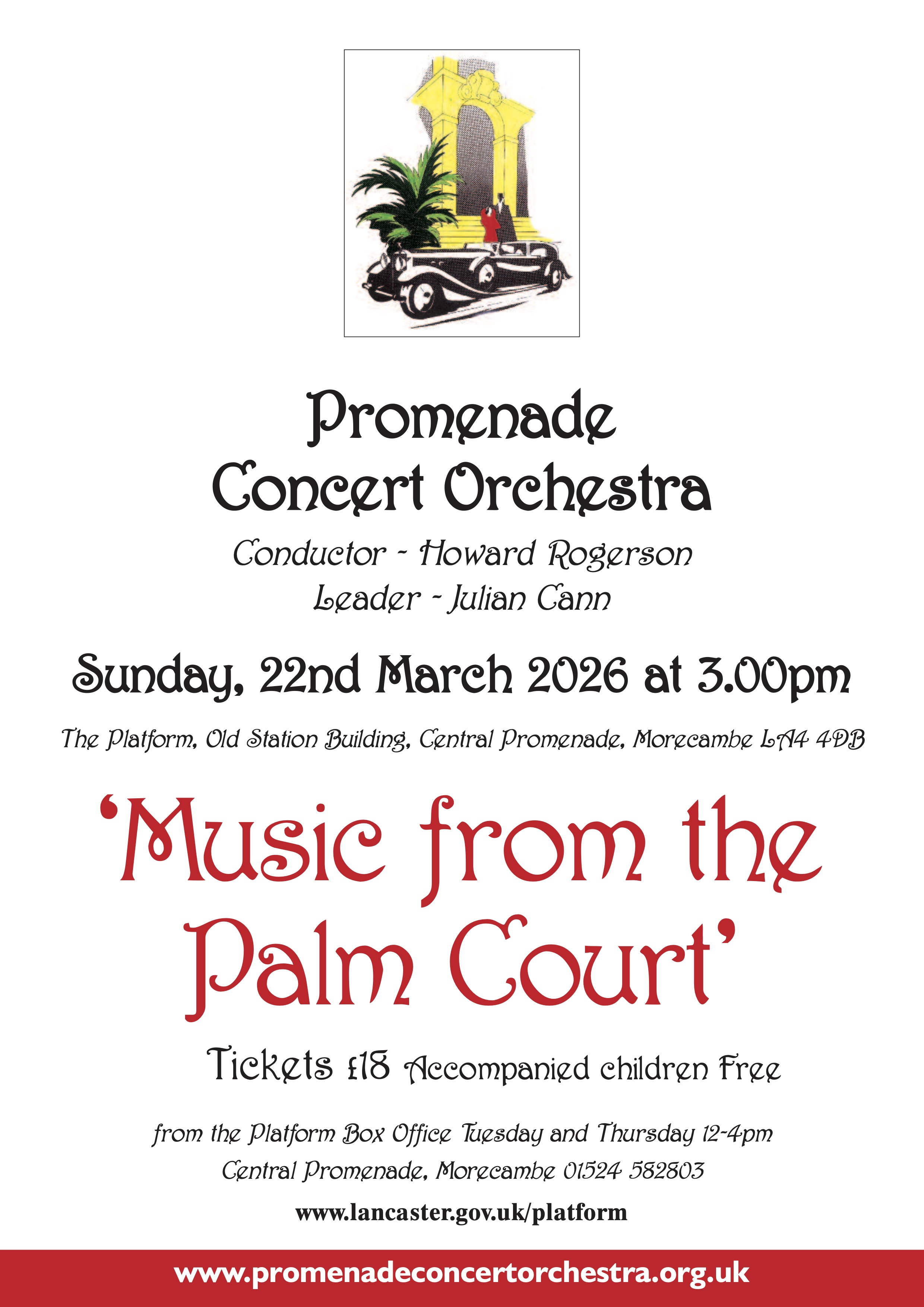 The concert will also feature a work for piccolo solo and orchestra (The Comet Scherzo). Val Baulard will lead the audience in a rendition of the 1926 carnival song Take Me Down to Morecambe and further audience involvement will be invited with a rendition of Bring Me Sunshine in celebration of Eric Morecambe's centenary year!